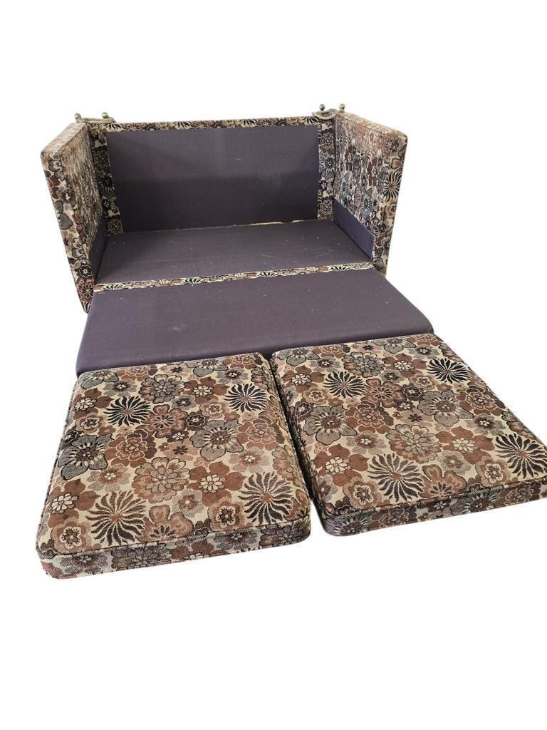 Vintage seventies two-seater sofa bed / settee. Retro sofa / couch that can be pulled out into a sofa bed. One-seater and three-seater are sold separately. In good vintage condition - ready for a second life in a retro or eclectic interior. Pickup in Houthalen-Helchteren (Belgium). Shipping possible for an additional fee, depending on the distance. Be sure to check out my other listings for more vintage furniture and finds.